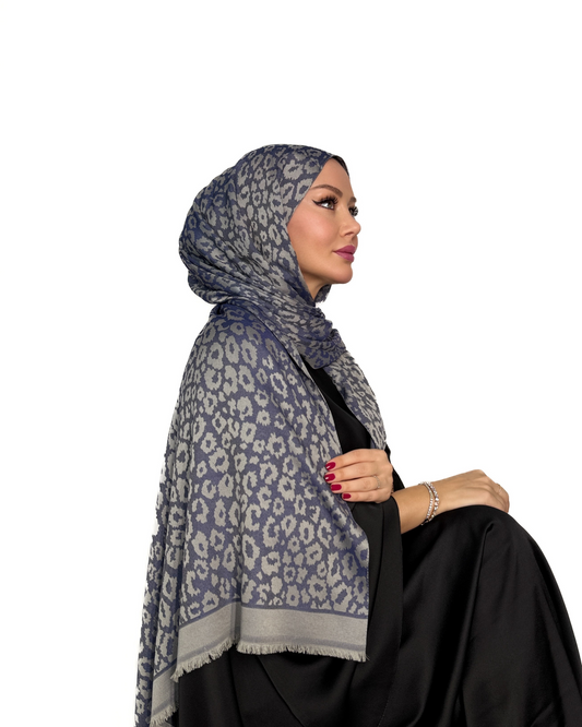 Premium Schal - Leopardenmuster - Königsblau-Grau