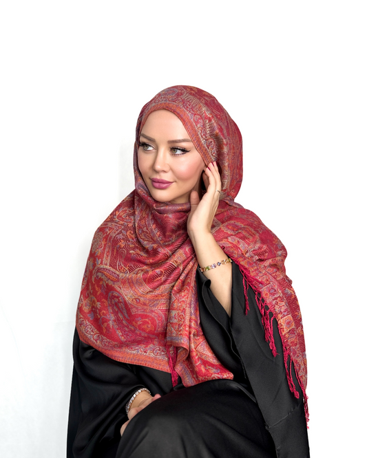 Pashmina Schal - Jacquard Paisley - Königsrubin
